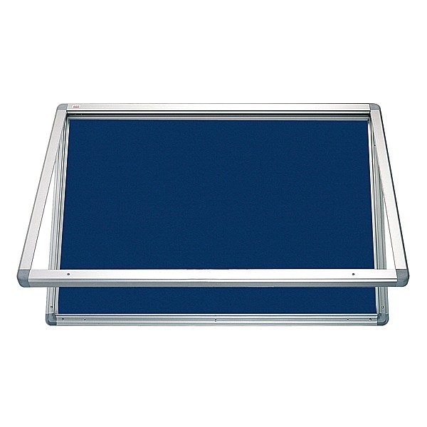 Vitrine d'affichage avec cadre en aluminium profilé, coins arrondis et vitrine en PVC ; elle s'ouvre vers le haut.