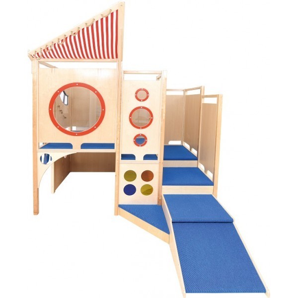 Cette structure de psychomotricité et d’éveil est composée de hublots en plexiglas et est recouverte d'une moquette antidérapant.
