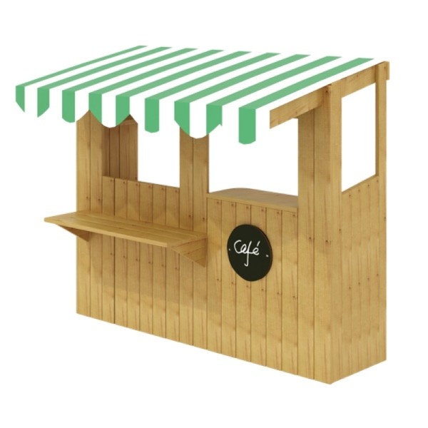Idéal pour les jeux de rôles, ce snack-bar d'extérieur pour cour de récréation est en bois robuste et résistant à une forte utilisation par les enfants en milieu de plein air.
