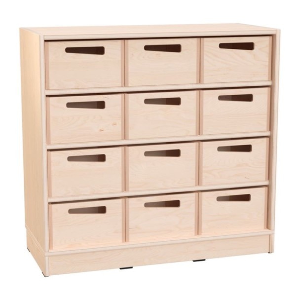 Meuble collectivité avec 12 bacs de rangement en bois