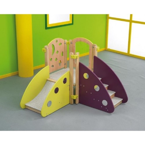 Cette structure de motricité pour bébés est conçue pour les crèches et est disponible en deux configurations : en angle ou en ligne.