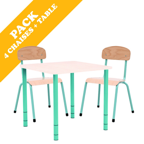 Le pack table carrée et 4 chaises est aussi disponible pour les crèches en taille T0 : pack table carrée et 4 chaises - T0