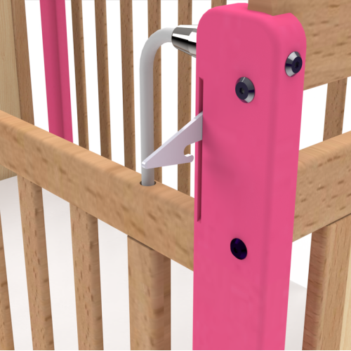 Le lit 2 enfants pour espace sieste crèche existe aussi avec le système Easy'Cat pour que le professionnel puisse garder le bébé dans les bras quand il ouvre et ferme le lit : lit duo crèche Easy' Cat avec matelas