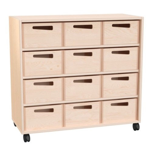 Meuble collectivité avec 12 bacs de rangement en bois