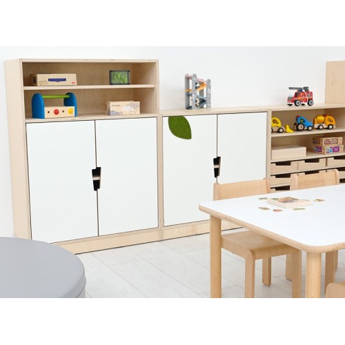 Armoire basse avec portes décorées pour école et accueil de loisirs