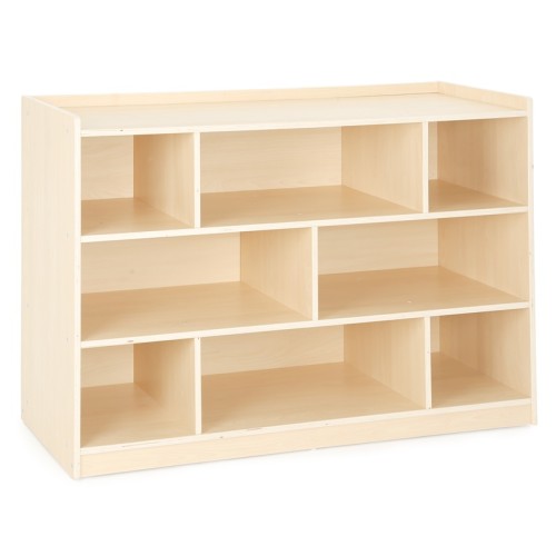 Le meuble de rangement pour crèche et école contient 8 compartiments ouverts.