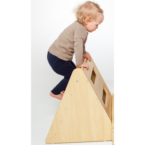La structure de motricité en bois avec miroir est conçue pour une installation en crèche, micro-crèche, MAM afin d’encourager le développement de la motricité chez les bébés de plus de 18 mois.