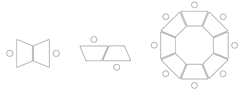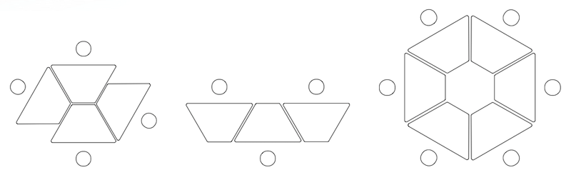 La forme trapézoïdale permet de former des configurations variées, comme des rangées, des cercler ou des « U » ; elle permet une utilisation optimale de la surface disponible.