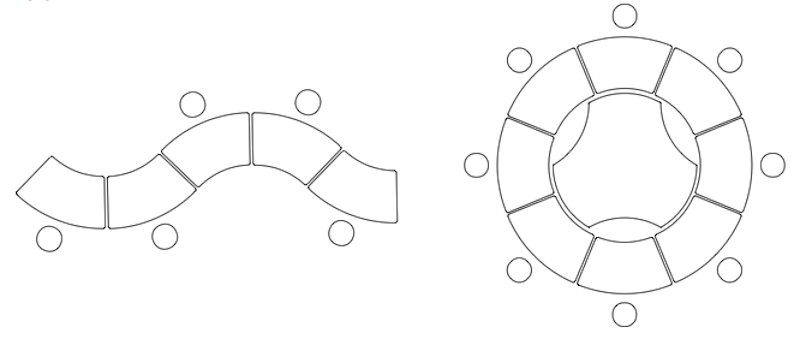 L'installation de table modulable courbée peut être complétée avec la table classe flexible ronde et découpée