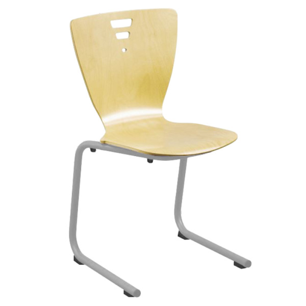 La chaise maternelle avec coque bois et piètement tube acier est disponible en 3 tailles, 3 finitions et 14 couleurs.