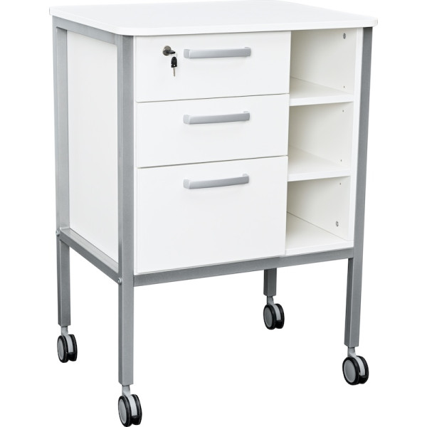 Le bureau dispose de trois tiroirs, dont le supérieur est verrouillable.