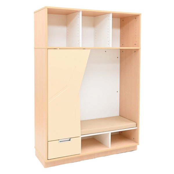Ce meuble coin lecture avec casiers s’intègre facilement dans une salle de vie, une classe ou un espace d’accueil pour installer un espace dédié à la lecture et au calme.