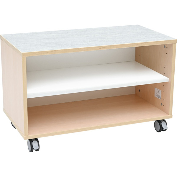 Grâce à son format compact, ce meuble peut servir de séparateur d’espace tout en restant accessible aux enfants. Il favorise l’autonomie et s’intègre facilement dans différents environnements pédagogiques.