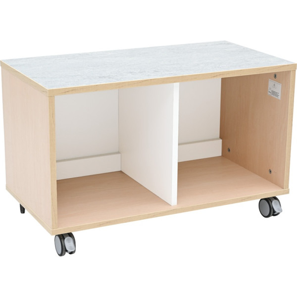 Le meuble casiers avec plateau de jeu acoustique est idéal pour organiser les espaces en crèche, école maternelle ou collectivité. Il combine rangement pratique et surface d’activité pour répondre aux besoins du quotidien.