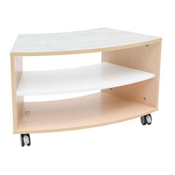 Le meuble incurvé avec plateau insonorisé est conçu pour aménager des espaces fluides et modulables en crèche, école maternelle ou collectivité. Sa forme arrondie permet de créer des zones d’activités conviviales tout en facilitant la circulation des enfants.