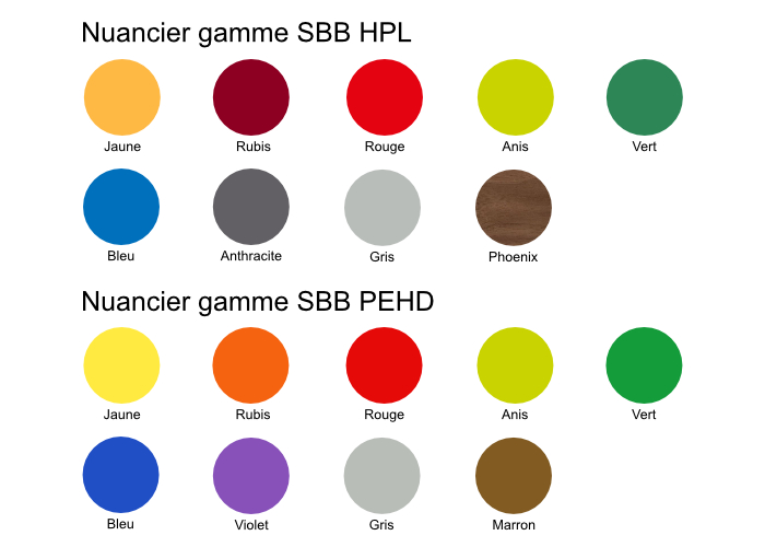 Pour modifier les couleurs de la structure de jeux, découvrez le nuancier ci-joint et contactez le service commercial.